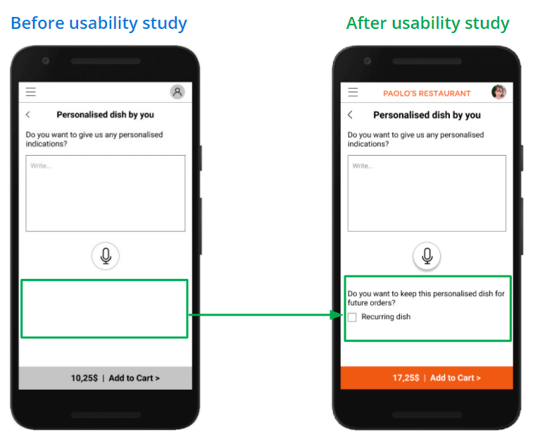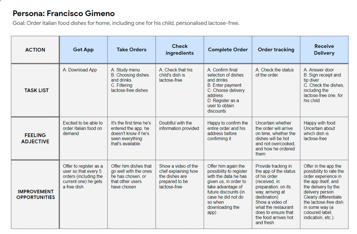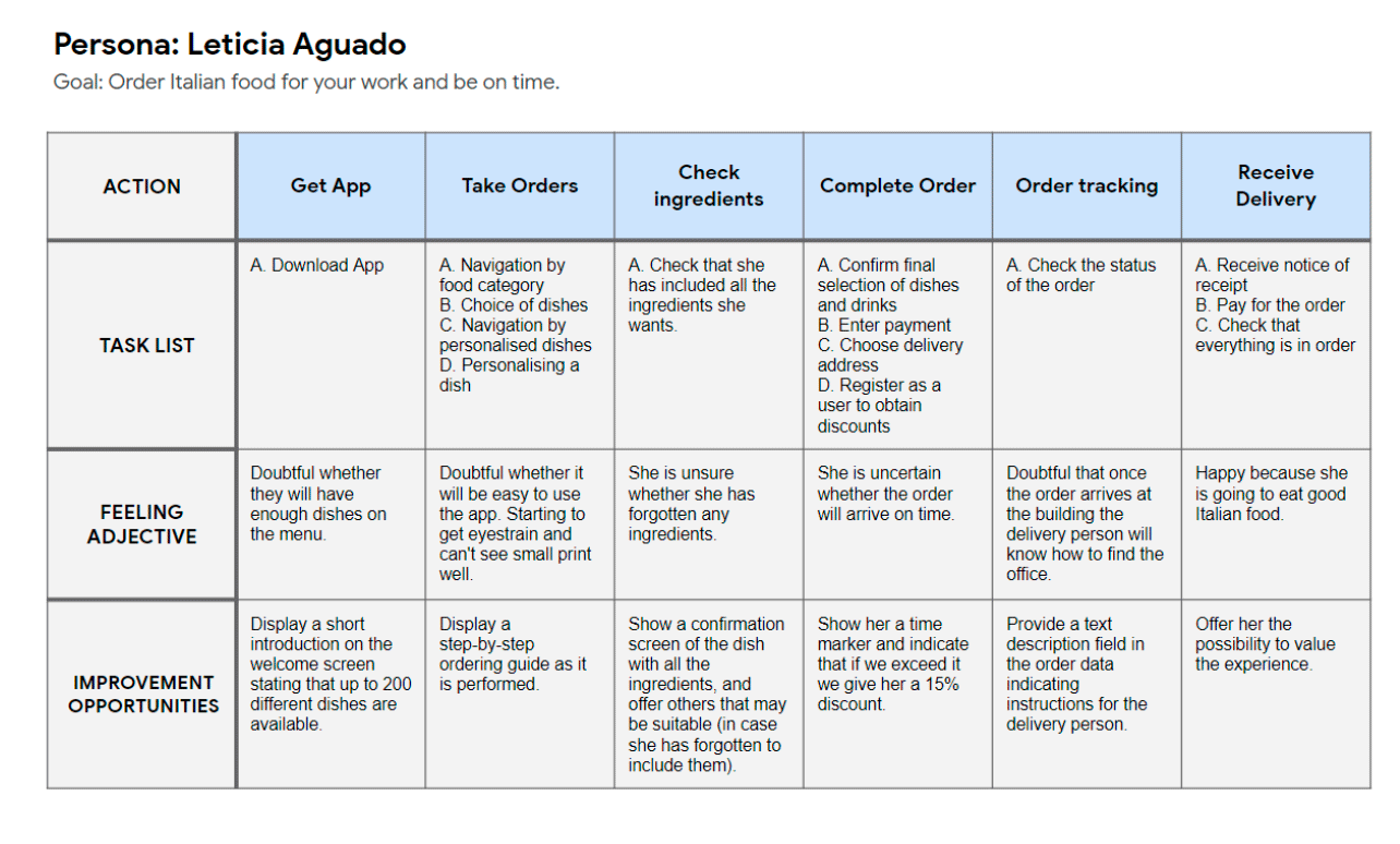 Francisco’s user journey mapping showed that it was important to show the details of the ingredients of the different dishes, and that this was a desired functionality.