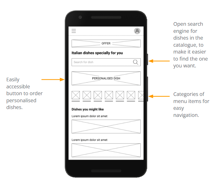 The low-fidelity prototype has focused on the most complex part of the app, the customisation of the personalised plate, one of the functionalities most desired by users.